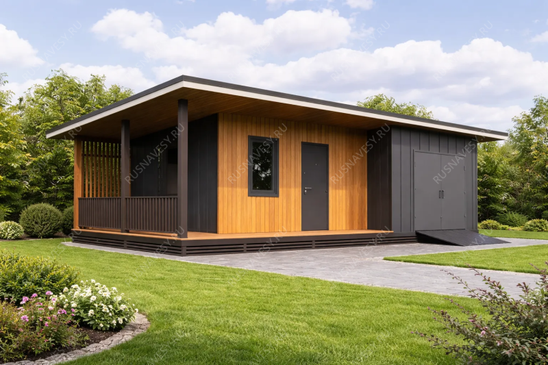 Навес к частному дому для автомобиля ГРИМСТАД