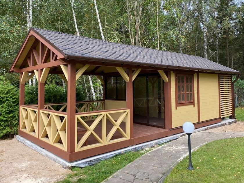 Габариты: 4×6, терраса 3×6 м. Площадь: 42 м²