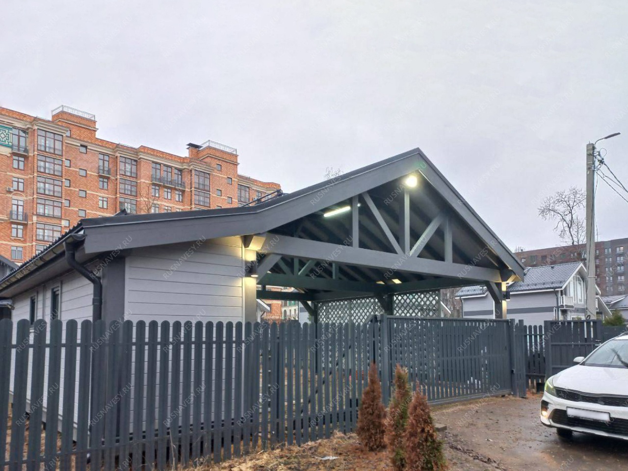 Навес к частному дому для автомобиля ГРИМСТАД