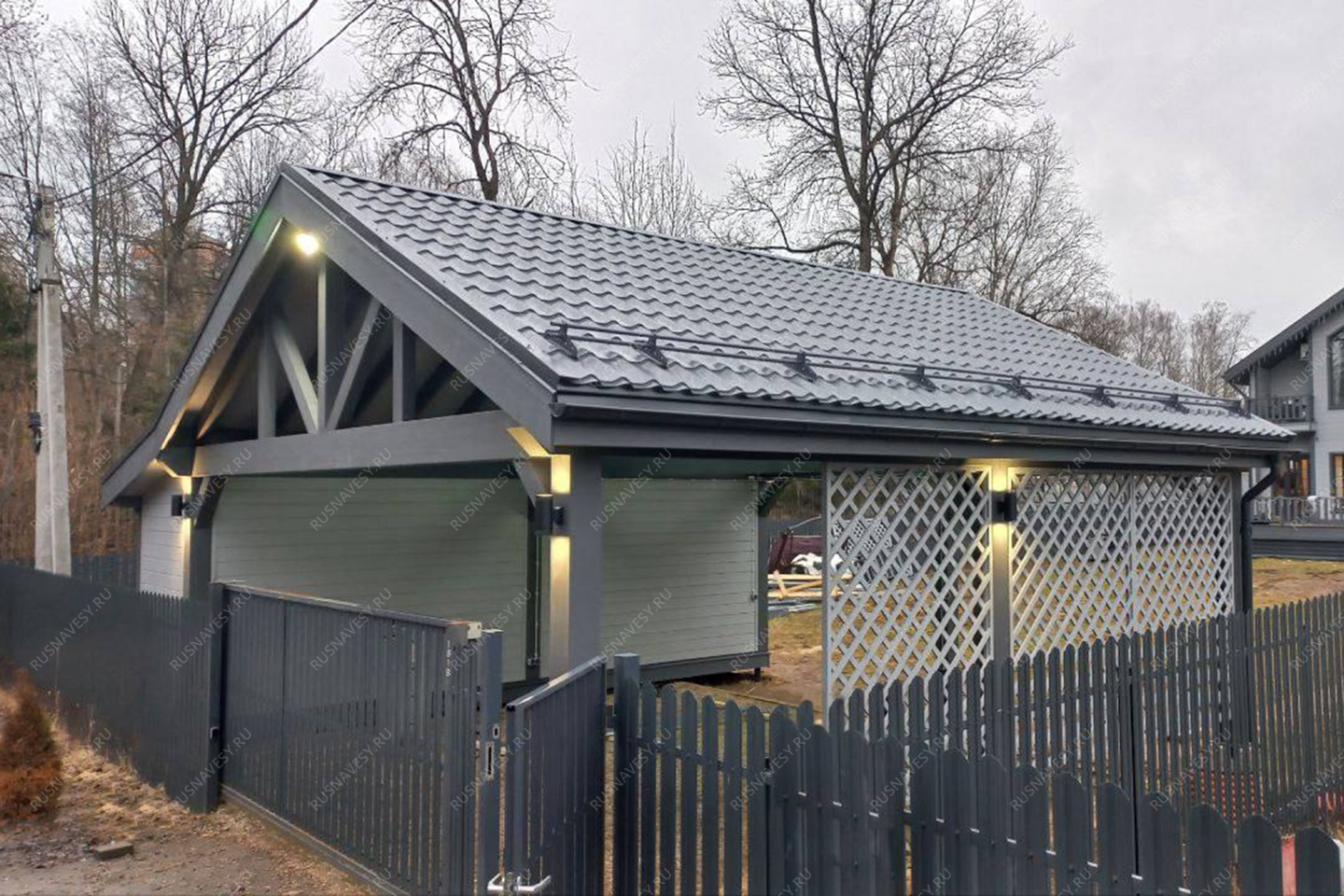 • Навес к частному дому для автомобиля ГРИМСТАД