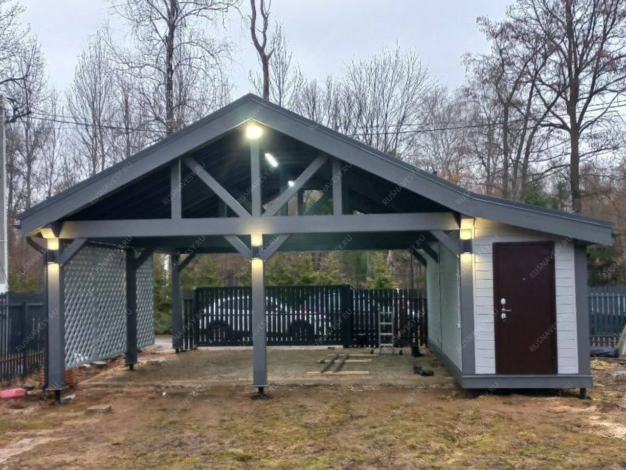Навес для автомобилей с хозблоком ЛАВРИОН