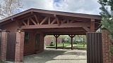 Навес из дерева для машин ГВАЛЬДО — масштабный архитектурный комплекс с квадратной планировкой, объединяющий просторную автостоянку на два места и функциональный хозблок в едином деревянном ансамбле. Габариты 8,3×8,2 м создают внушительную территорию 68 м², где транспорт и подсобные помещения размещены с максимальным удобством для ежедневного использования. Двухскатная кровельная система с центральным водоразделом обеспечивает надежный отвод атмосферных осадков в противоположные стороны, предотвращая накопление влаги и снижая нагрузку на силовые элементы. Деревянный каркас из отборной хвойной древесины промышленной обработки демонстрирует устойчивость к сезонным изменениям температуры и влажности, сохраняя первоначальную геометрию десятилетиями. Хозяйственная секция оснащена входной системой и оконными проемами, создавая комфортные условия для хранения садового инвентаря, автомобильных принадлежностей и сезонного оборудования. Квадратная конфигурация ГВАЛЬДО позволяет гибко организовать внутреннее пространство и оптимально вписать сооружение в участки различной планировки. Солидные размеры и добротные материалы подчеркивают основательность подхода к решению парковочных и хозяйственных задач на загородной территории.