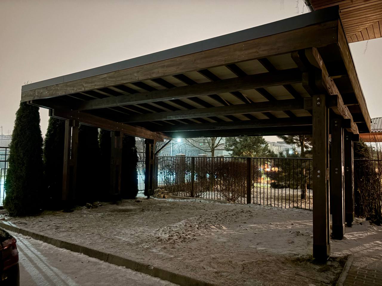 Деревянный навес СКАНДИНАВСКИЙ 6х7 — это лаконичное решение, совмещающее стиль, функциональность и практичность. Компактные размеры (6х7 м) и площадь 42 м² позволяют удобно разместить два автомобиля с запасом места для открывания дверей и маневров.