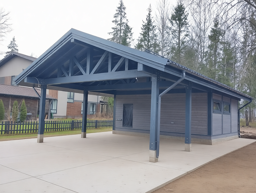 • Навес к частному дому для автомобиля ГРИМСТАД